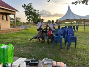 Im Vorfeld haben wir in Soroti Werkzeuge gekauft. Wir wollten einen Rasenmäher, diesen gibt’s eventuell in der Hauptstadt Kampala. Das kann man sich so vorstellen, wir in Deutschland könnten unsere Werkzeuge nur in Berlin einkaufen. Wir haben uns daraufhin für einen Freischneider entschieden. Der Tag endet mit einem gemeinsamen Essen.